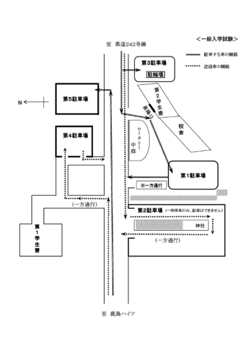 令和8年1月17日(土)に実施いたします一般入学試験において、駐車場の利用方法(動線)を下記の通り変更させていただきます。
